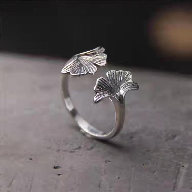 Japanischer Hansen Girl Retro-Stil Ginkgo Blatt Ring Damenmode Persönlichkeit Offener Zeigefingerring