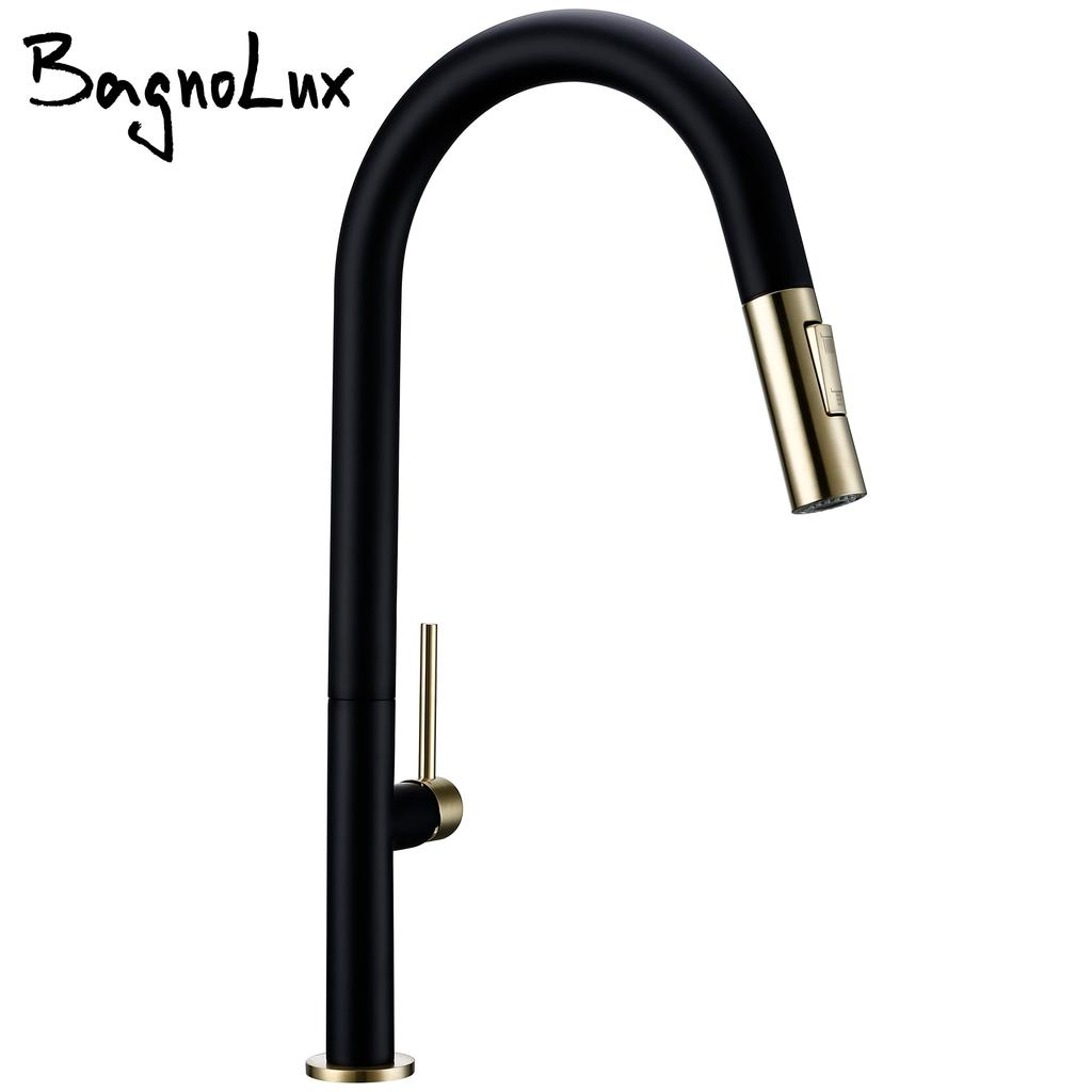 Bagnolux Brass Black Plus Gold 360 Oegree Rotation kitchen Hot Cold Water Sink Taps Pull Out Spout Deck Mounted Kitchen Faucet