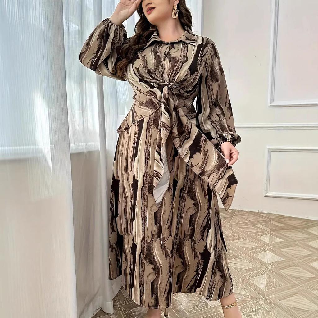 Damenkleid mit Taillenbindung, Übergröße, bedruckte Kleider