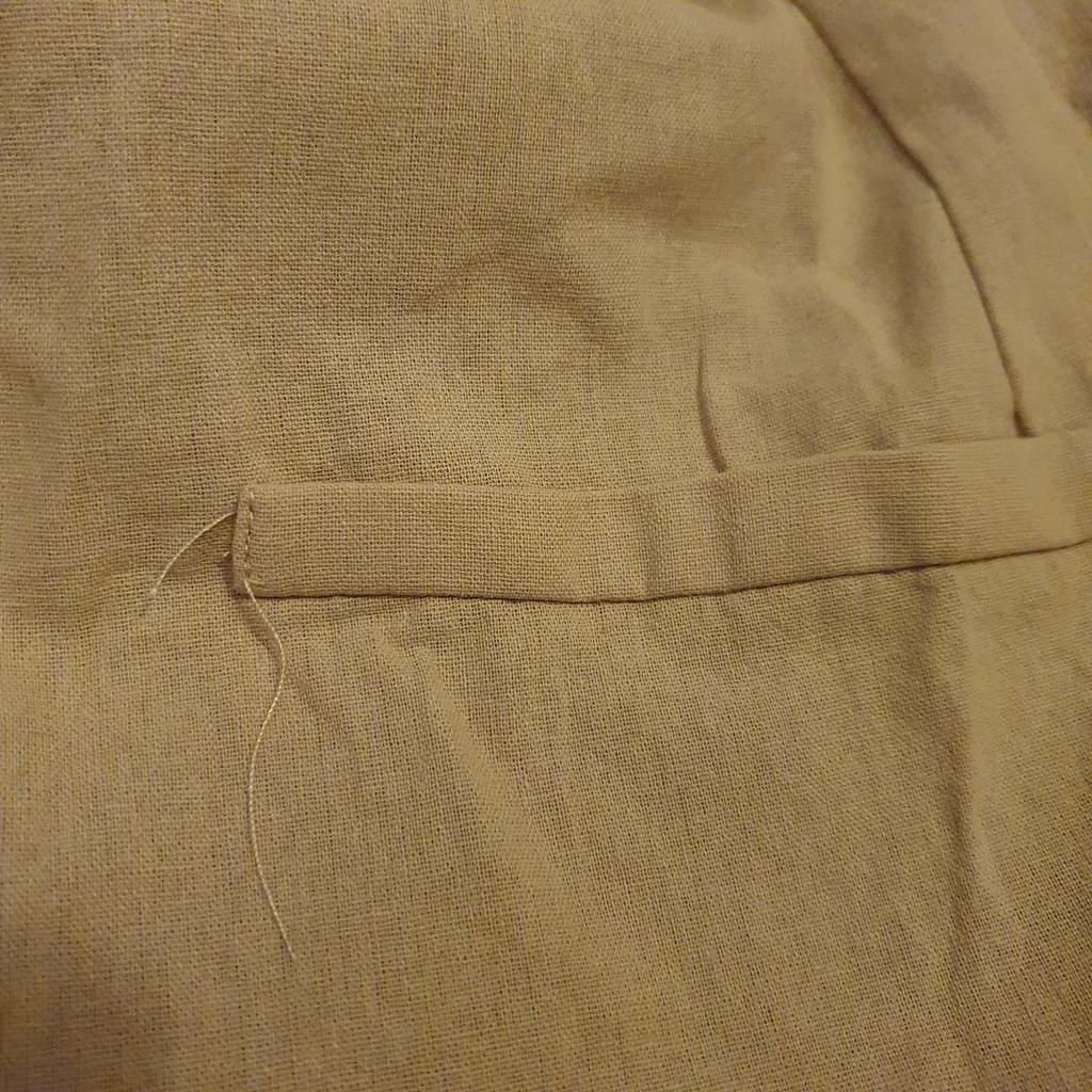 Ordentlich genäht. Farbe wie auf dem Foto. Der Stoff ist dünner Kattun, der zum Bedecken von Paketen verwendet wurde). Aber wenigstens ist es Baumwolle. Höchstwahrscheinlich laufen sie sogar beim Waschen in kaltem Wasser ein. Der Preis ist allerdings entsprechend gering.