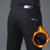 Herbst Und Winter Neue Herren Samt/Normale Jeans Slim Fit Kleines Gerades Bein Mittlere Bundhöhe Elastisch Schwarz Bequem Weiche Passform Herren