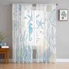 Marine Textur Muscheln Seesterne Seepferdchen Transparente Vorhänge für Wohnzimmerdekoration Fenstervorhang Küche Tüll Voile Drapierungen