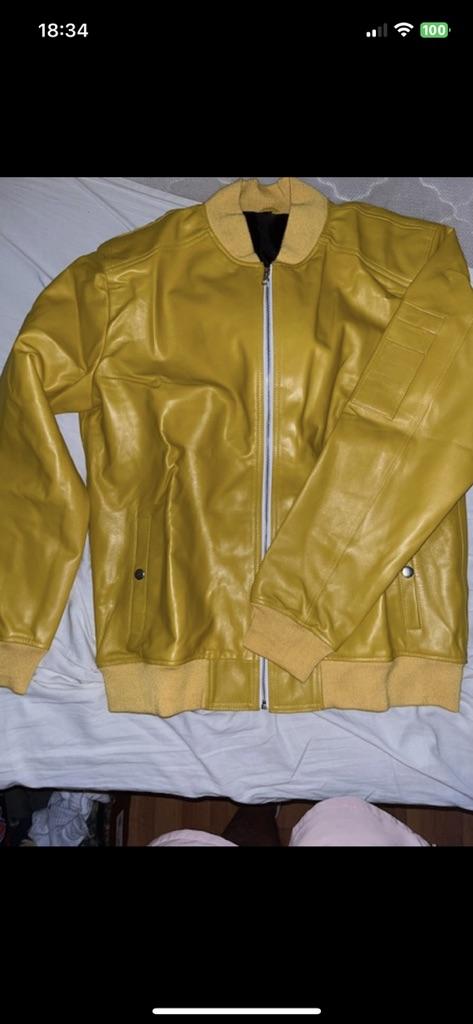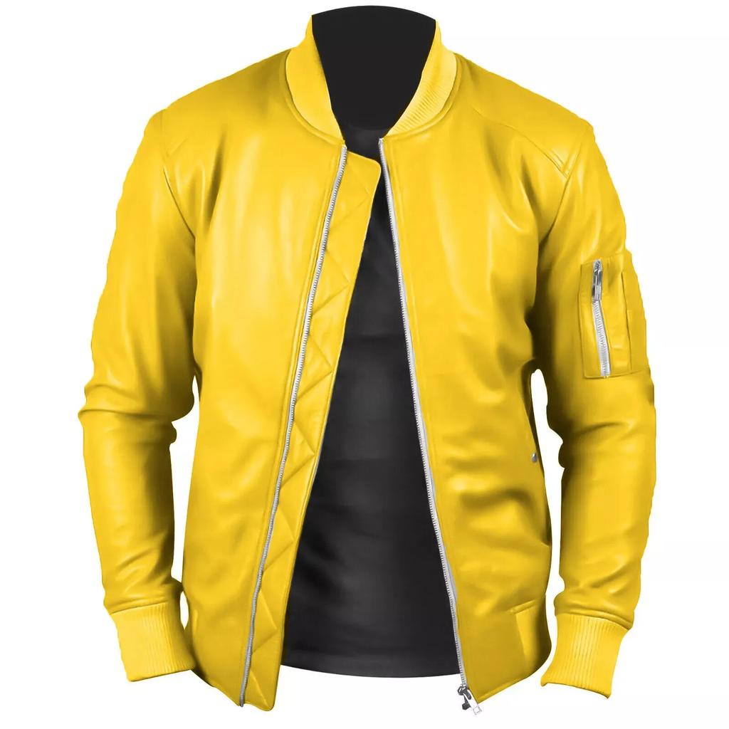 Stylische Gelbe Jacke Herren Bomber Biker Weiche Lammfell Lederjacke Handarbeit
