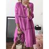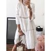 Frauen Boho Solid Neck Kleider Hollow Out Splice 3/4 Ärmel mittellange Kleider