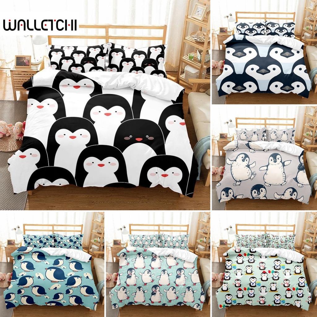 Cartoon Pinguin Bettwäsche Set King/Queen Größe Für Kinder Jungen Mädchen,animierte Antarktisches Tier Illustration Bettbezug,Weiß Schwarz