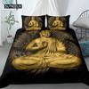 Buddha-Bettbezug-Set, Kingsize, exotisches ethnisches Bohemian-Bettwäsche-Set, Mikrofaser, goldener Buddha-Statue-Druck, wunderschöner Bettbezug