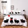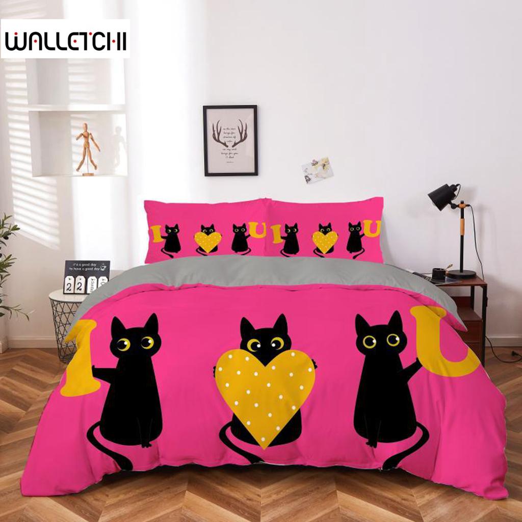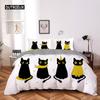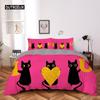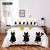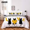 Cartoon Katze Bettbezug Set Mikrofaser Schwarzes Kätzchen Gelbes Liebesherz Muster Bettwäsche Set 2/3-teilig Queen King Size Bettdeckenbezug