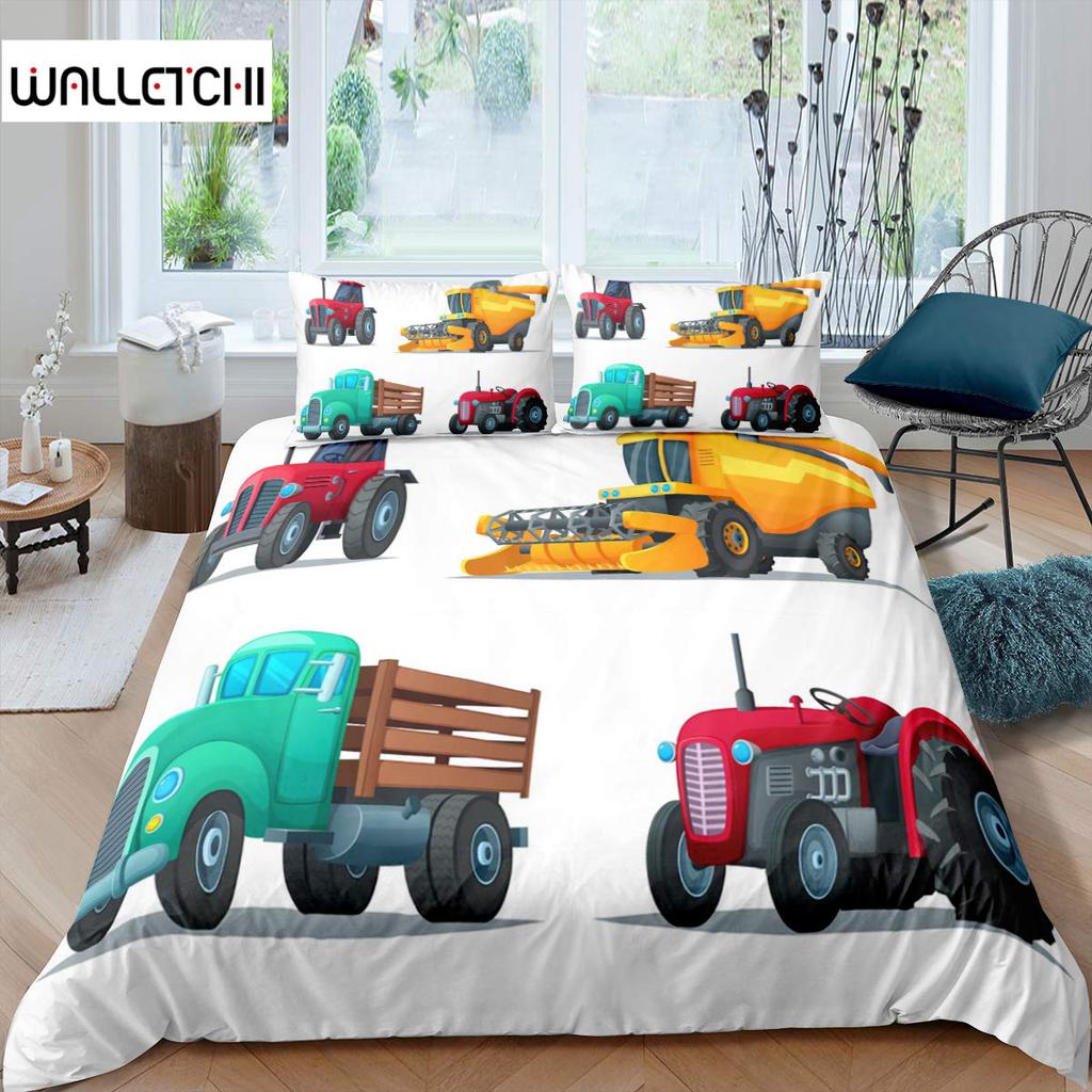 Bettbezug für Kinder mit Bagger, Traktor-LKW-Bettwäscheset, Baufahrzeug-Cartoon-Bettbezug, Bettbezug aus Polyester