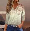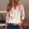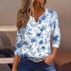 Damen T-Shirt mit Aufdruck, Knopfleiste, 3/4-Ärmel, für den Alltag, Wochenendmode, Basic, V-Ausschnitt, normales Oberteil