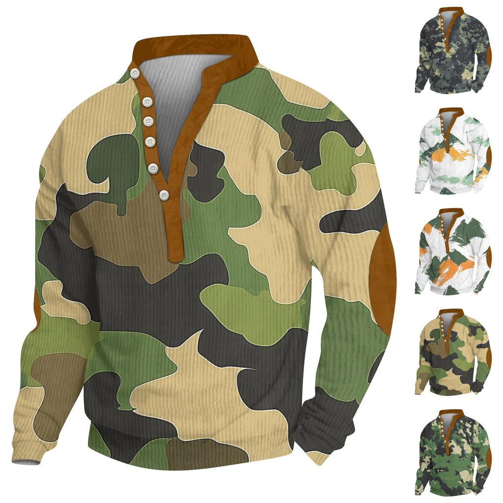 Herren Print Plüsch Warmer Mantel Fleece Pullover Freizeitjacke Tasche Pullover Wintermantel