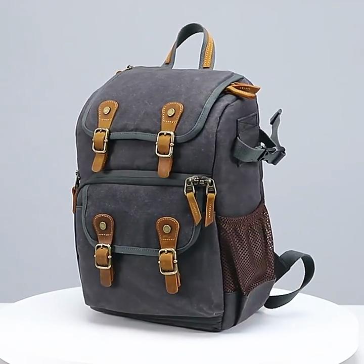 CAREELL C280 Wasserdichter Retro-Kamera-Rucksack aus Batik-Canvas und Leder, lässige Reiseobjektivtaschen für Nikon Sony DSLR-Stativ