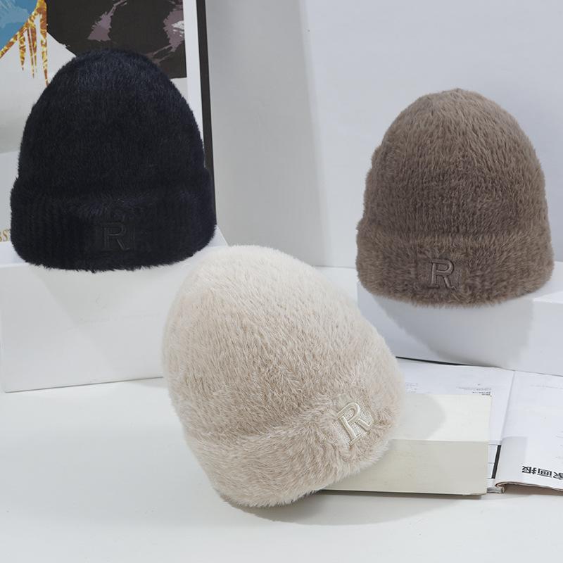 Herbst und Winter Neuer Hut Damen Großer Kopf Um die Buchstaben Wollmütze Imitation Zobelwolle Herbst und Winter Warme Strickmütze