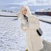 Einfarbige Damenjacke Extra Lang 2024 Herbst und Winter Neu Trendige Kapuzenjacke Verdickt Locker Lässig