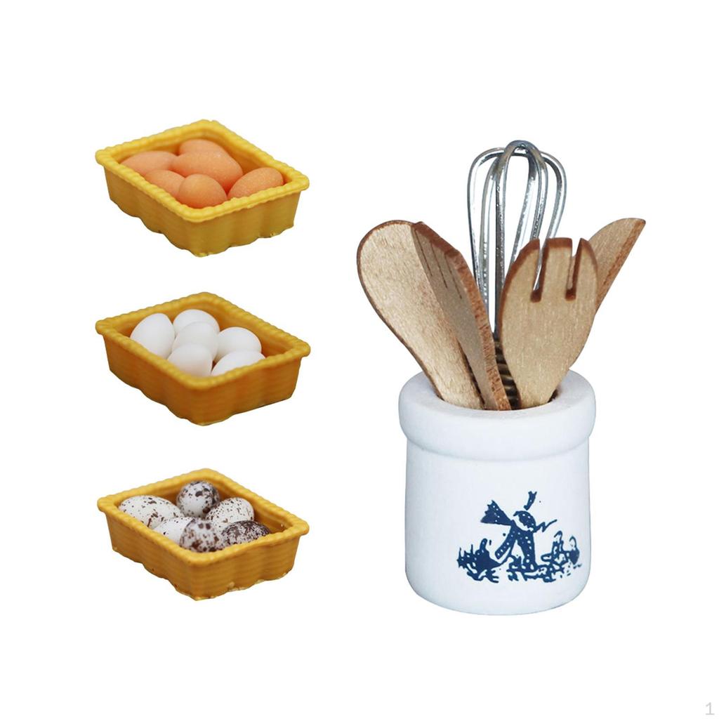 - 【STELLEN SIE SICH VOR, SPIELZEUG ZU SPIELEN】: Miniatur-Puppenhaus-Geschirr und Ei-Modell, Sie können damit Ihre Puppen-Szene dekorieren.