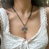 Halskette im Ethno-Stil mit mehreren Lagen aus Pilzleder, Wachsschnur und Türkisperlen