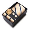 The set includes tie, square scarf, cufflinks, black gift box, and corsage.