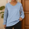 Lockeres T-Shirt mit V-Ausschnitt und Spitze im Patchwork-Stil für Damen, langärmelig, lässig