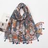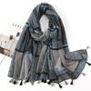 Literarischer kleiner frischer Retro-Fransenschal aus Baumwolle und Leinen, schöner bedruckter Seidenschal für Damen, japanischer Sonnenschutzschal