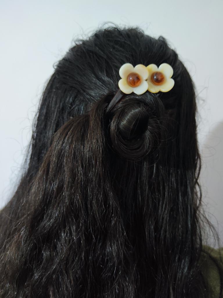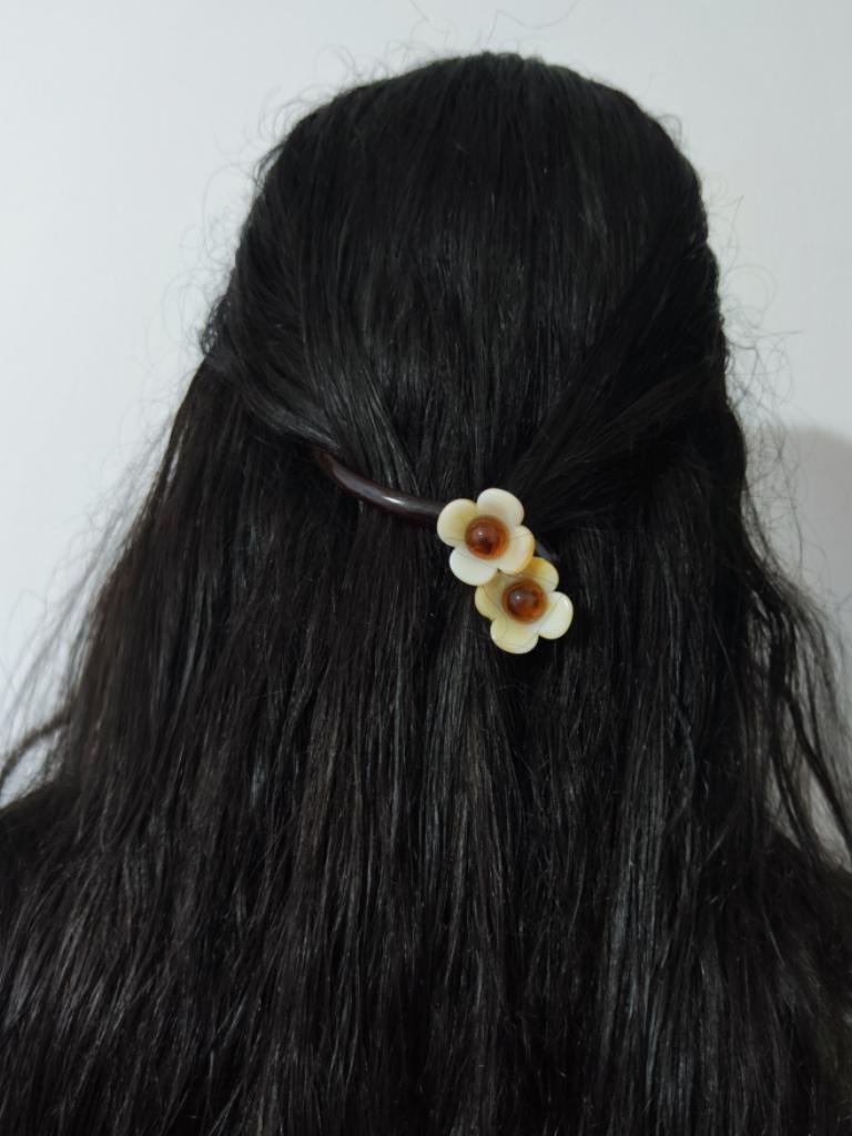 Elegante Haarspange mit Blumenmotiv aus Kunstharz – minimalistische längliche Haarspange mit einfarbiger Blumenklammer im Vintage-Stil für gedrehte Hochsteckfrisuren