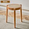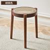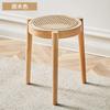 Nordischer runder Hocker aus massivem Holz und Rattan, lässiger niedriger Hocker, leichte, luxuriöse, kleine Bank aus Rattan, zum Stapeln von Schuhen