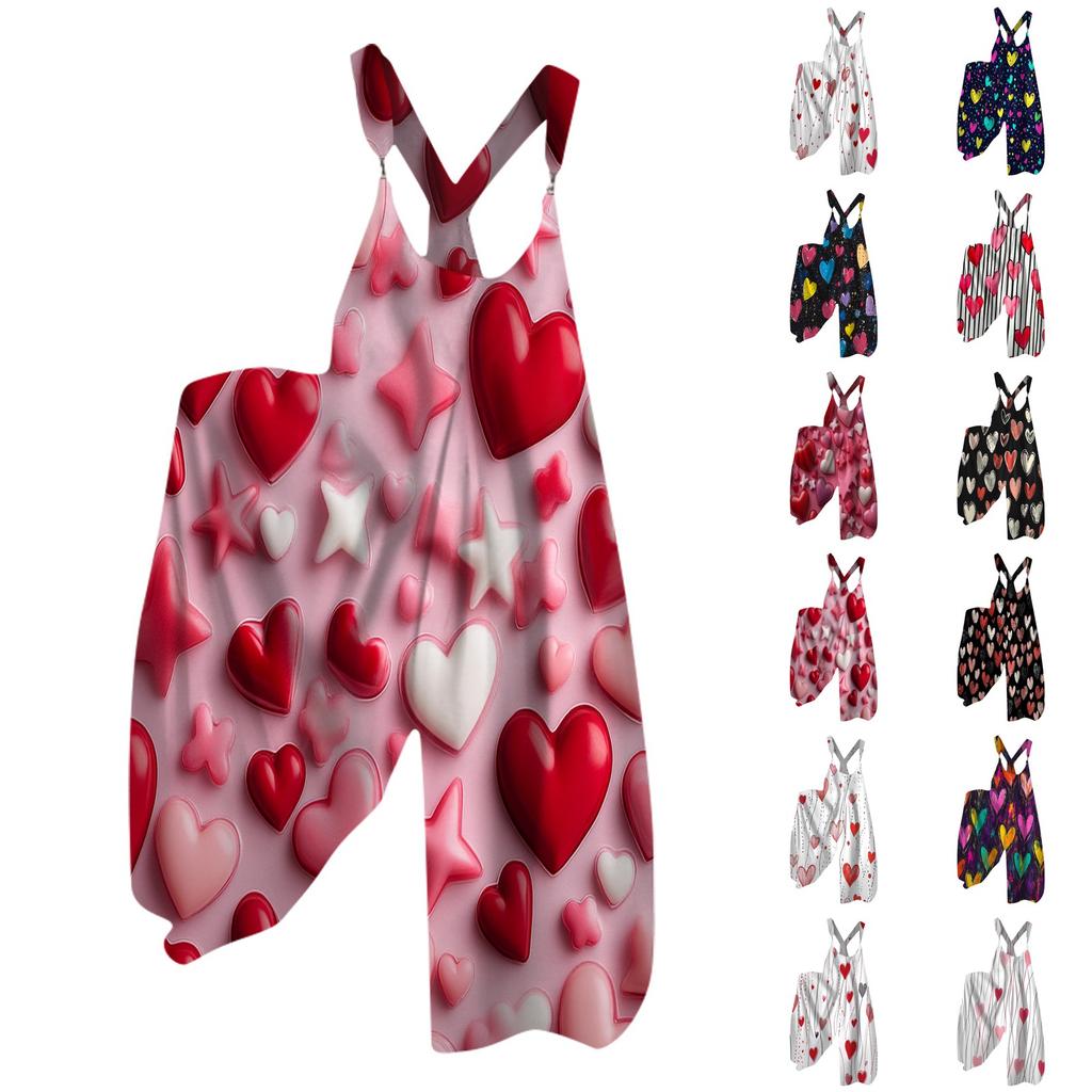 Sommer-Overall für Damen mit Valentinstags-Print im Vintage-Stil (Nicht verstellbarer Riemen)