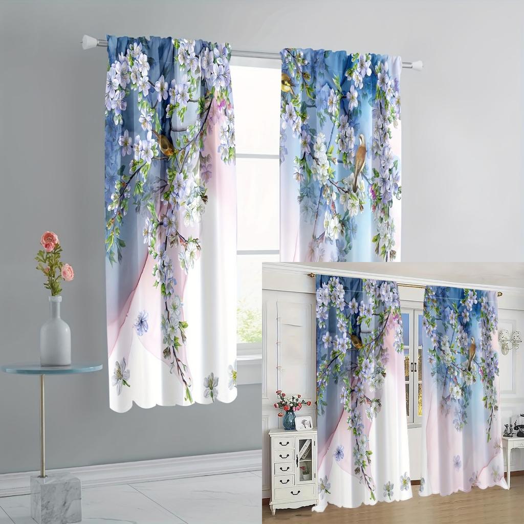 2 Stück Ganzjahres Universal Bunt Floral Blumen Romantisch Floral Digital Bedruckte Vorhänge Stangentasche Vorhang Wohnzimmer Dekor