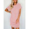 HNXC Damenmode Sommer Frühling Einfarbig Druck Kurzarm O-Ausschnitt Freizeitkleider