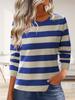 Herbst Winter Vielseitige Mode Einfarbig Streifen Rundhals Langarm Damen T-Shirt Top