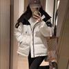 Down jacket women's 2024 winter new contrasting color short hooded white duck down thickened warm windproof jacket