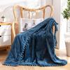 Fleece Throw Blanket Couch with Pom Pom Fringe Soft Cozy Fuzzy Flannel Blankets for Sofa Bed Large Lightweight Plush All Seasons