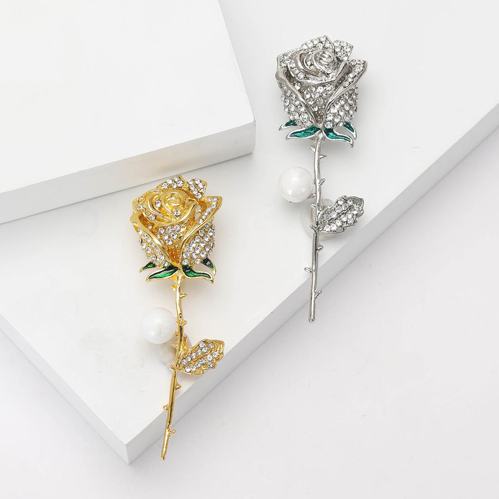 Retro Temperament Legierung Strass Rose Brosche Exquisite Und Vielseitig Damen Kleidung Corsage Schmuck Pin