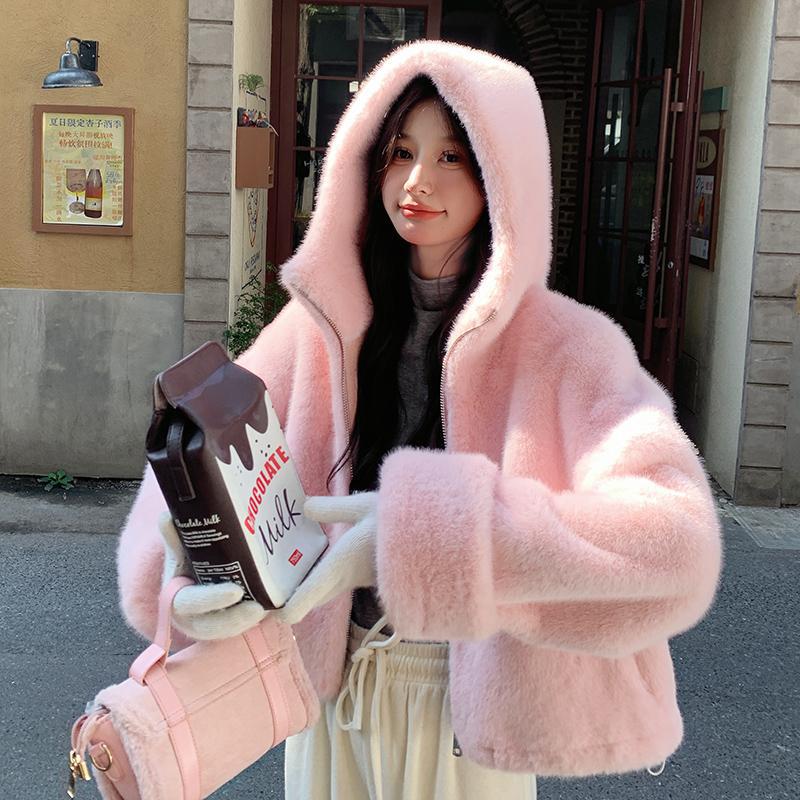 Imitation mink velvet short coat women's autumn and winter 2024 new pink lamb wool imitation fur plush thickened top tide