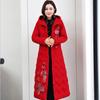 Mother's embroidered cotton-padded clothes with zipper Women's medium and long loose large size down cotton-padded clothes Winter cotton-padded