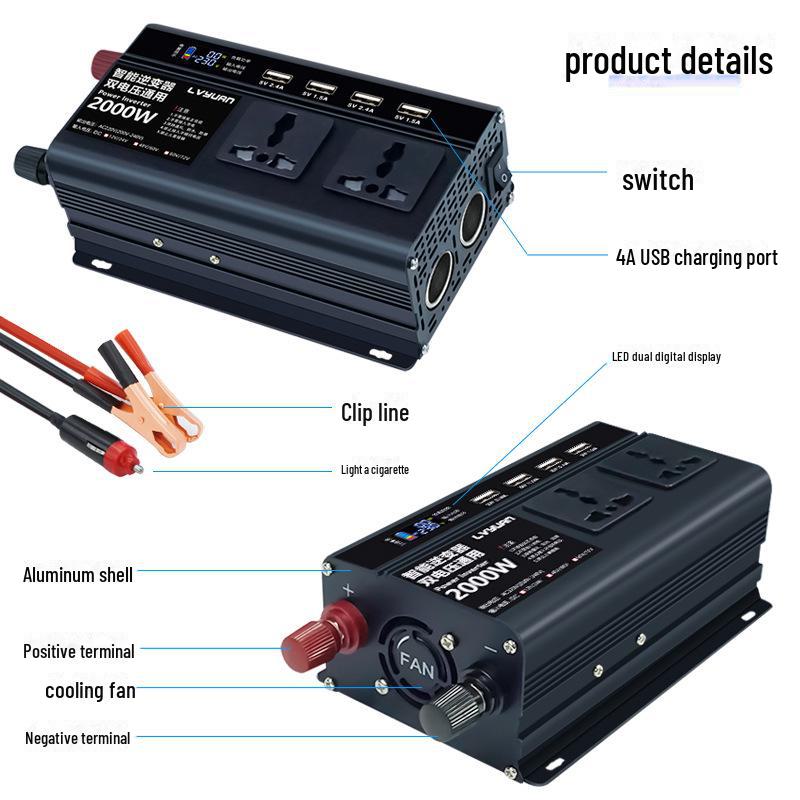 Tuyang Dual-Voltage Auto-Wechselrichter, 500W/2000W, 12-24V Universelle Kompatibilität