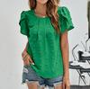 Damenmode Plissiert Rundhals Lässig Einfarbig Blütenblattärmel Locker Top
