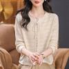 Rundhals Schnürung Ausgeschnitten Langarm T-Shirt Damen Kurzer Basic-Pullover Strickpullover, Lockeres Mama-Outfit