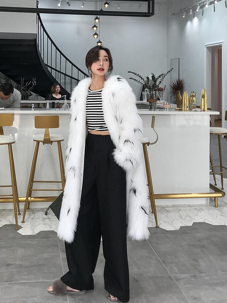 2024 new fur long coat hooded long-sleeved jacket thickened warm imitation fox fur trench coat