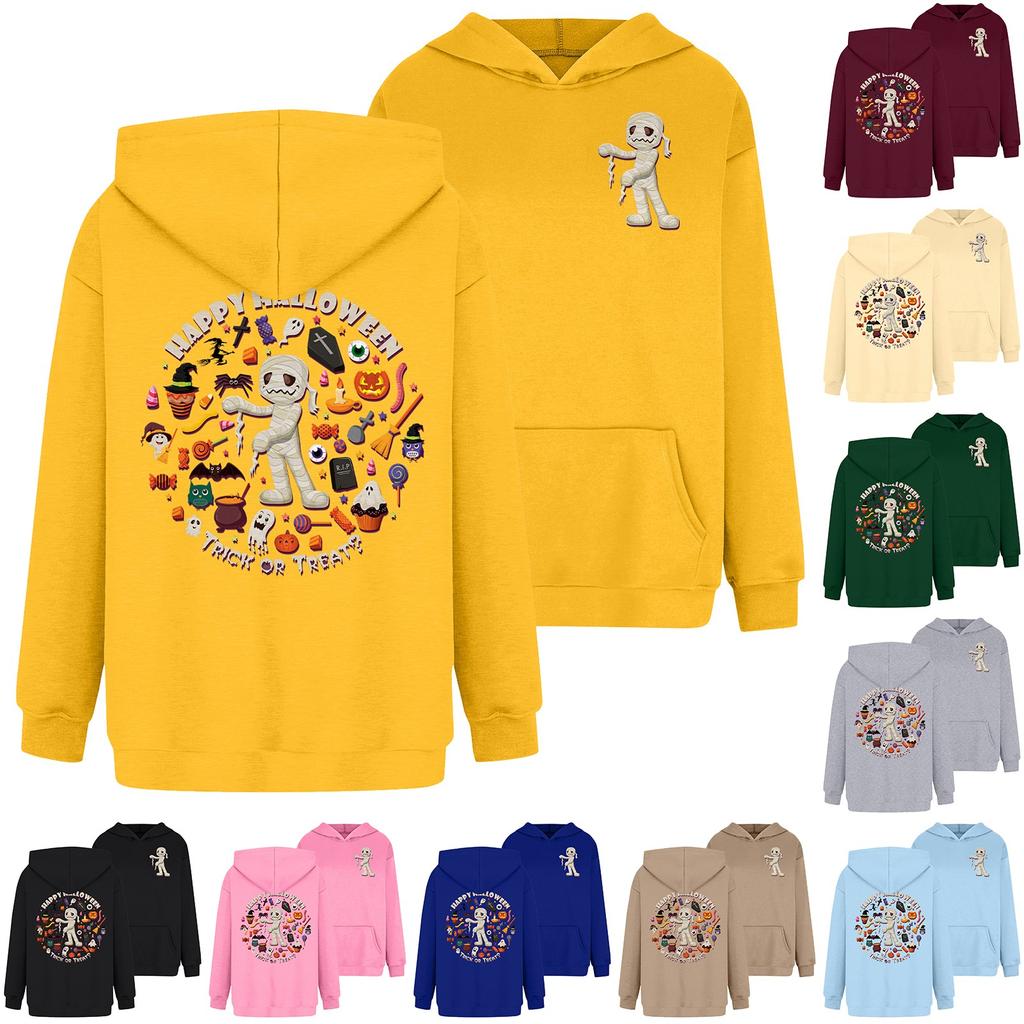 Damen-Kapuzenpullover mit Rundhalsausschnitt, langen Ärmeln und Halloween-Print