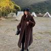 Vintage braun lange overknee nerz haar silhouette revers mantel verdickt hohe umweltfreundliche pelz pelzmantel