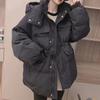 Hooded tooling down jacket women's short 2024 winter new waist loose fashion white duck down jacket large size tide