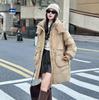 Square buckle down jacket women's medium length 2024 winter new hooded thickened loose white duck down warm jacket tide