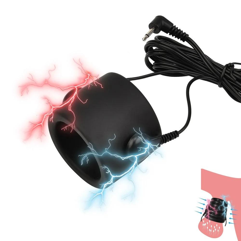 Adult Sexy Men's Silicone Electric Shock Scrotum Binding Device Sperm Locking Delay Stimulation Testicle Set Sex Toy Supplies