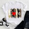 Summer Printed Floral Heart Pattern Base Shirt with White Letters Simple Pure Cotton Short Sleeved Women's T-Shirts Women’s