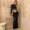 Damen Rundhalsausschnitt Hohe Taille Langarm Taille Abnehmen Hüfte Halbkörper Kleid Zweiteiliges Set