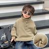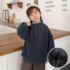 Kinder Österreichischer Samt Stehkragen Warmes Sweatshirt Plus Samtverdickung Großkinder Knopfleiste Einfarbiges Oberteil