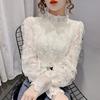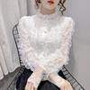 Spitzenunterteil Hemd Oberbekleidung Damen Frühling und Herbst Gepolstert Mode Spitze Strickjacke Französisches Revers Langarm Top