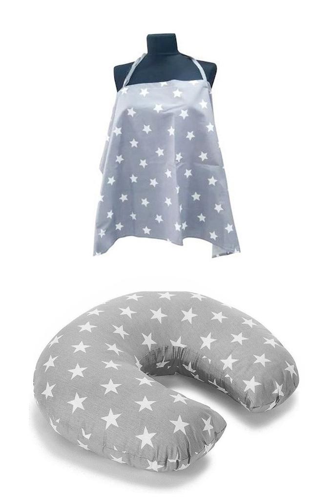 2' Li Gri Yıldız Bebek Seti Emzirme Yastığı + Emzirme Önlüğü