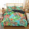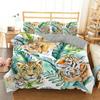 Bettbezug mit Dschungeltieren, King- und Queen-Size-Bett, tropische Pflanzen, Palmblätter, Bettwäsche-Set für Kinder, Tiger, Wildtiere, 23-teilig, Polyester-Bettbezug