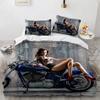 Schönheit Motorrad Bettwäschesets Modisch Sexy Schlafzimmer Bettbezugset Heimtextilien Bettwäscheset für Frauen Mann Bettbezug