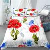 3D Rote Mohn Bettbezug King Queen Größe Schöne Blume Polyester Steppdeckenbezug mit Kissenbezügen Kinder Erwachsene Zuhause Schlafzimmer Dekor
